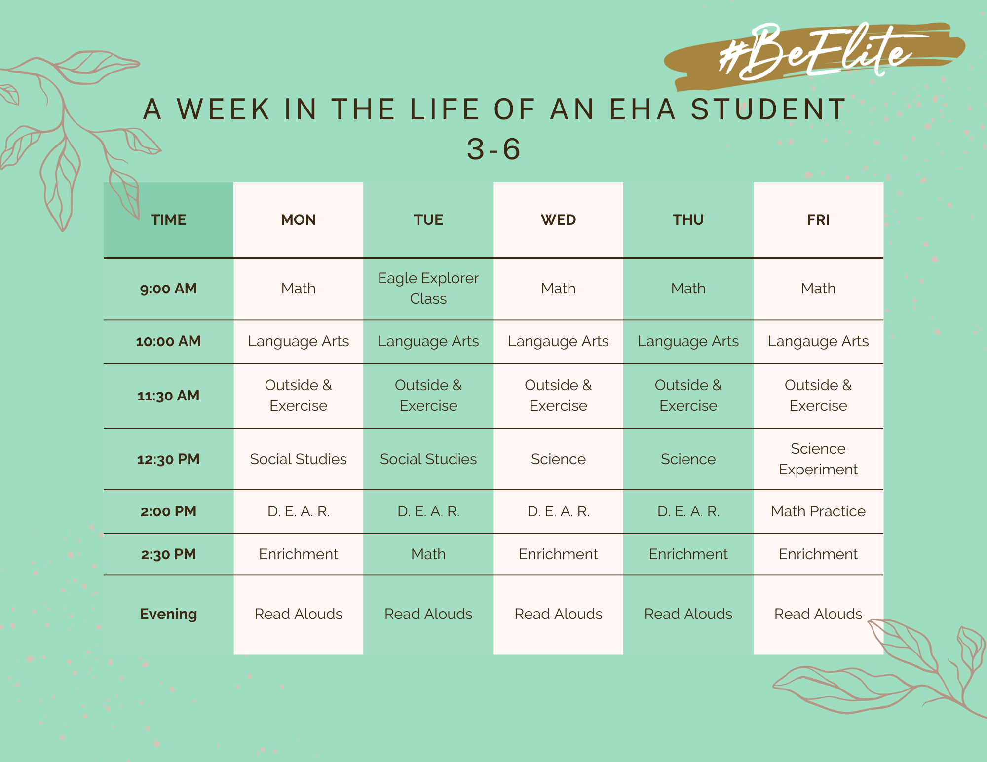 Check out a sample schedule for an Elite Homeschool student: