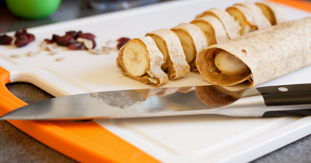 Spread the peanut butter on a wheat or flour tortilla (your choice), add the banana, roll it up like a burrito. If your child prefers it cut into bites, go for it. It’s a healthy snack that will take little to no energy.